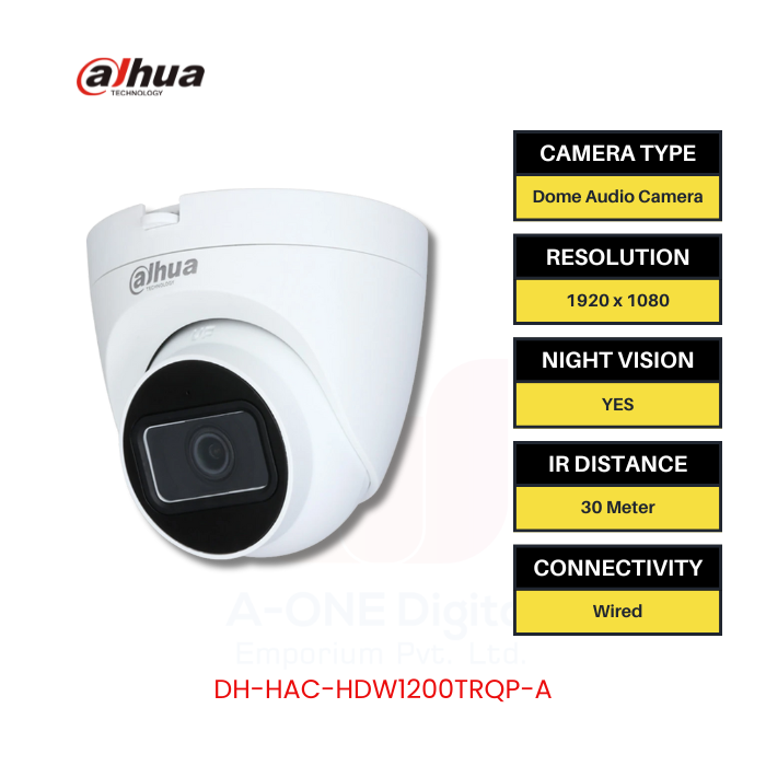 Dahua 2MP HDCVI Digital Audio IR EyeBall Camera (DH-HAC-HDW1200TRQP-A)  3,150.00